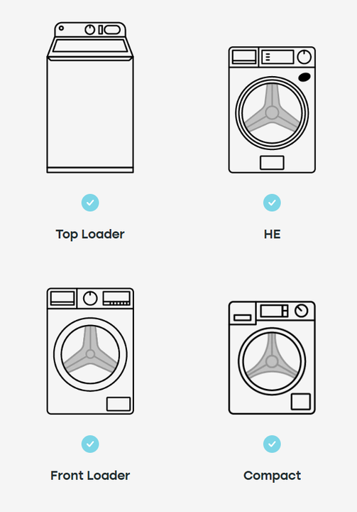 Notre produit marche avec les laveuses à chargement par le dessus et par en avant. Même les modèles HE.